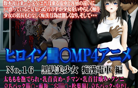 3DCG 【初回500円オフ】新ヒロイン陵○MP4アニメNo.16[黒髪美少女 痴○電車 編]太ももを撫でられ・乳首責め・手マン・乳首甘噛み・クンニ 立バック陵〇・前後二穴陵〇・松葉崩し立バック・中出し
